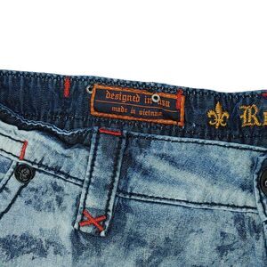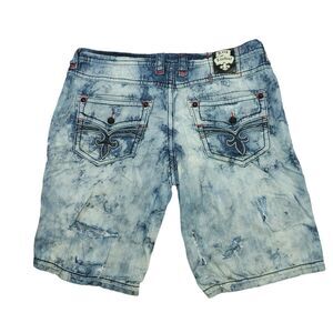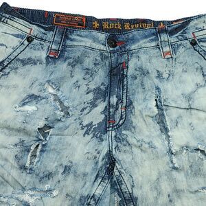 Heavily TRASHED Rock Revival Shorts Men’s 42 Tie Dye Acid Wash Light Denim READ