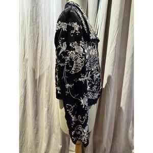 Stunning, dramatic lightweight, jacket, in black silk, heavily embroidered with flowers and birds.
