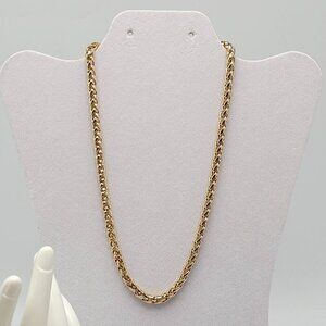 This elegant gold rope chain set, featuring a necklace and bracelet, provides a sophisticated accessory option for formal or business attire.