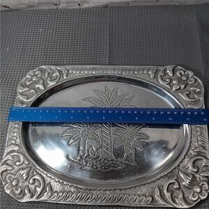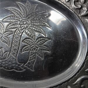 Heavy Aluminum Palm Tree Platter 12" Rectangle . Measures approximately 12" x 8 3/4". Some surface scratches and pits some of which may be from manufacturing. From a non-smoking home. Not Branded.