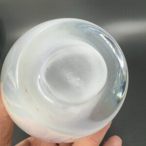 Heavy Art Glass Vase Vessel White Iridescent Finish Multicolor Glass Vase Decor
