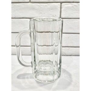 Heavy BEER MUG‎ Large 6” Clear Glass with Handle & Octagon Panel Bottom