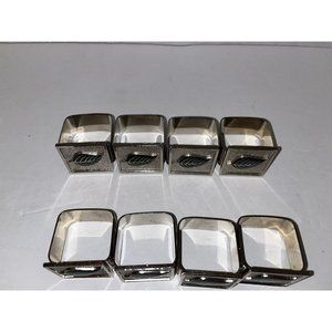 8 Heavy Cast Metal Leaf Napkin Rings Square Green Enameled Metal Leafs , Silver Tone. Approximately 1.5 inches x 1.5 inches. The Cast Face is approximately 1/8 inch thick. Preowned in excellent condition , no Chips or Damage . Feedback is always appreciated thanks for looking. Visit our Store for more Bargains and Unique Vintage items.