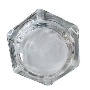 Heavy Clear Glass Cigar Ashtray Hexagon 6 Sides Slots 8.5 Inch MCM Vintage