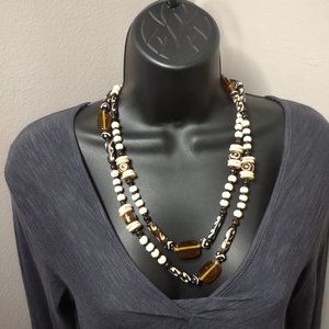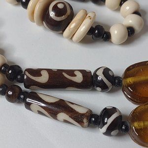 Heavy Decorative Glass And Bone Bead Necklace. Check Out My Closet For Other Great Items!!! Thank You For Considering Making A Purchase.
