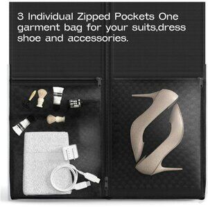 🧿【Large Capacity Mesh Pockets】2 large breathable pockets at the bottom of the suit bags for closet storage are big enough for a pair of ankle boots in one side and a change of clothes in the other side or store your accessories of the garment bag, transparent pockets keep all accessories visible.