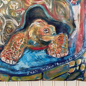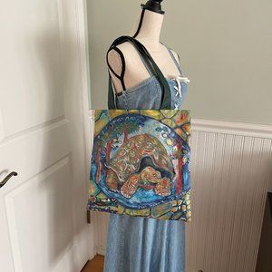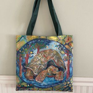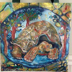 Large Tote bag - never used - from Ecuador's Galapagos Islands. Depicts tortoise by local artist - art on one side. Heavy duty canvas vinyl tote. Size: 16" x 16". Thanks.