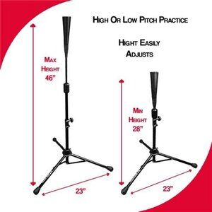 Effortlessly adjust the softball tee height from 28 inches to 46 inches to match your skill level or practice needs with a convenient locking mechanism, making it suitable for multiple players, whether you're working on low strikes or high fastballs.