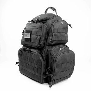 Tactical Range Backpack has an impact resistant EVA cradle for transporting to the range. The cradle can be cut to custom fit and provide a shock proof protection. FREE cradle and U.S. flag patch included! Heavy Duty Tactical backpack is made of 900D water resistant polyester material. Curved adjustable back straps with padded back support for comfort. Thick heavy duty zippers, ear muff & cell phone pocket with plenty of space. The rugged backpack has tons of storage for accessories, 10 compartments for storage and 12 total holders. There are Double lockable zippers for added security. Keep yourself organized for the range or outdoors. The Multi-Functional backpack provides extreme comfort and organization. Equipped with a rain cover, The rugged materials allow you to take your pack with you outdoors hiking, camping and travel. This tactical range bag is a practical, yet helpful gift for any enthusiast. This is a perfect gift for Christmas, birthdays and the holidays.
