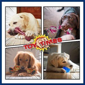 🧿Reliable Materials: Tough big rope toys - Natural washable cotton, resistant biting, not hurt teeth; Squeaky toys - made by natural rubber, soft but durable; Bone chew toy - beef-flavored nylon material, could withstand repeated chewing. Reassuring toys will protect fur's health, allowing them to chew & play safely.