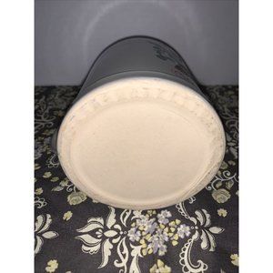 Heavy stein mug/ stoneware style measures 11cm in height. Color is light gray with a brown barrel holding yellow wheat, green hops, brown mallet, paddle and stir mech. Red letters wearing off on the “Hopfen u.Malz Gott erhalt’s!” words.