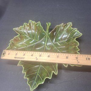 Ceramic Green Maple Leaf Serving Platter Handmade. Initials MM in the back.
