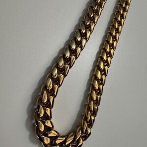 Make a bold statement with this heavy Cuban link chain necklace featuring a high-polish gold-tone finish and secure box clasp.