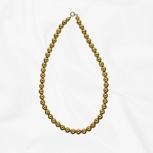 Goldtone clasp hardware. Goldtone metal beads. Material not confirmed, weighs 1.4oz.
