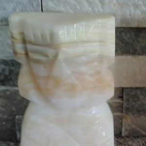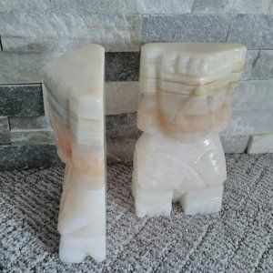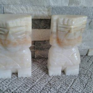 Heavy Hand Carved Onyx Marble Aztec Bookends, Tiki
