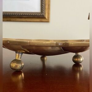 Heavy Large Vintage Mid Century Brass Nautical Scallop Shell Center Bowl Footed