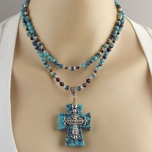 Heavy Matrix Double Layer Turquoise Cross Necklace