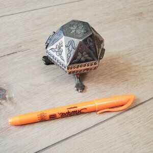 Heavy Metal Dome Trinket Jewelry Snuff Box Silver Tone Claw Foot Hinged Lid VTG