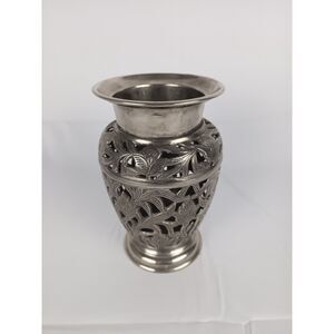 Heavy Metal Vase Stainless Steel Decorative Flower Vase 8 In Intricate Metalwork
