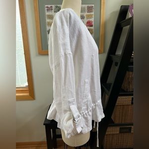 Brand New with tags attached - Eileen Fisher White Heavy Organic Linen Zip Up Jacket. Full Zip. Adjustable buckle sleeves. Adjustable cinch waist.
