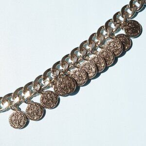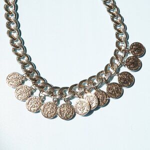 #coinnecklace #chunkychain #curbchainqueen #statementjewelry #boldgold #powernecklace #poshvintage #highdramaaccessories #fleurdelis #gildedglam