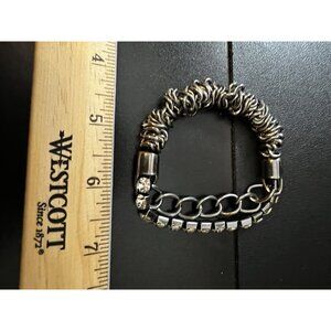 Heavy Silver Metal Rings Chain & Faux Diamond Stretchy Bracelet