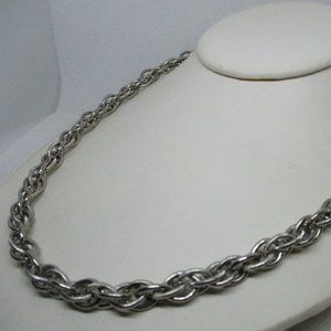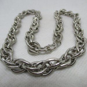 Heavy Textured Large Link Necklace Silver Tone Metal Rolo Large Link Chain