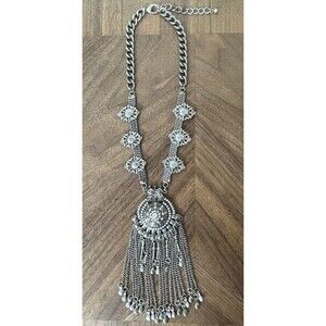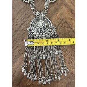 Heavy Tribal Ethnic Statement Gypsy Boho European Choker Necklace Silver Tone
