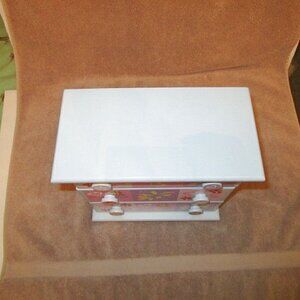 Heavy WOOD Organizer JEWELRY BOX Accessories Storage LADYBUG Floral 70s VTG