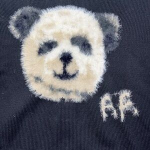 Heavy weight knitted sweater. Faux fur panda on front. By FairFafo.