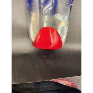 Heavy blue, red and clear vase with controlled bubbles. Possible Kosta Boda