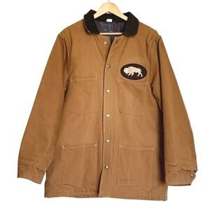 Heavy-Duty Work Jacket Wool Lined, Brown Canvas Carhartt Style Mens L 42-44 EUC