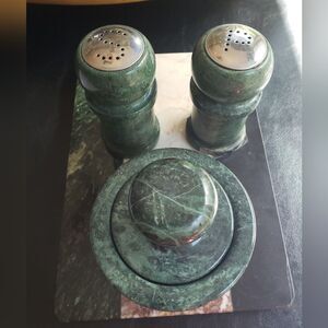 Cutting Board, Salt & Pepper Set, and Mushroom Mortar with Pestle. All SOLID heavy marble pieces