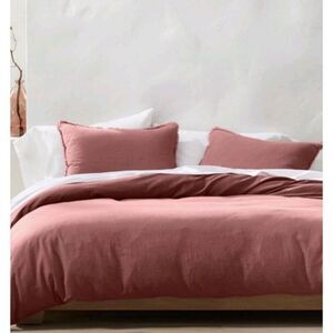 Heavyweight Linen Blend Comforter and Sham Set - Casaluna Pink