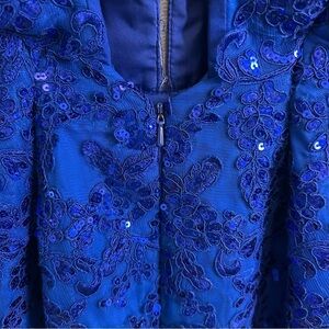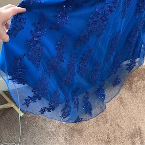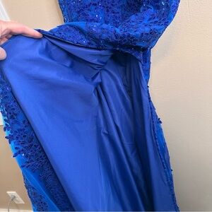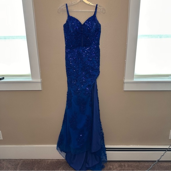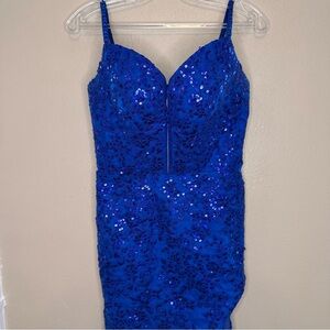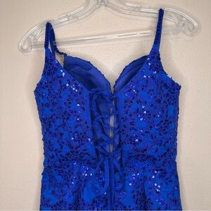 Hebeos Blue Sequined Spaghetti Strap Sweetheart Prom Gown Side Slit Size 2