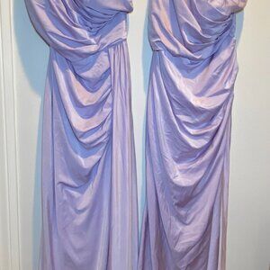Sheath/Column Jersey Ruched One-Shoulder Sleeveless Sweep/Brush Train Bridesmaid. Color: Lavender. These are the same dress and 1 has been altered. Size: US8-AU/UK12-EUR38 (no alterations) Size: US12-AU/UK16-EUR42 has been hemmed and side train has been removed