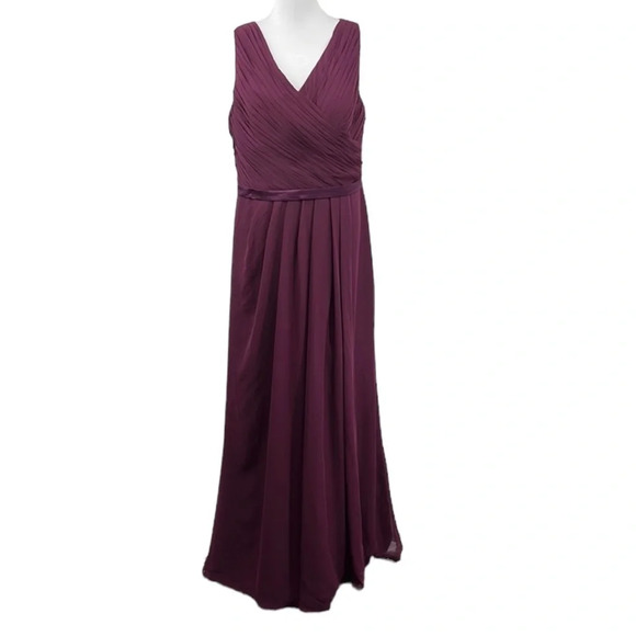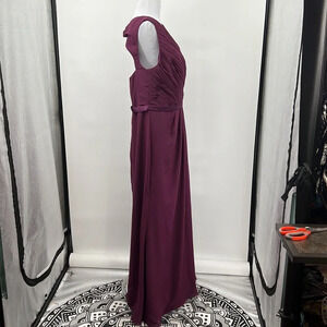Hebeos Ruched V Neck Pleated Sleeveless Purple Maxi Dress Womens 1X Long Gown. Bridesmaid. Prom Dress. Back Cut out. Lined. Hook Closure. Front side slit.