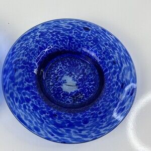 Hecho En Mexico Blue Decorative Art Glass Bowls Candle Holders