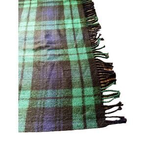 Hector Russell Scotland Wool Green Blue Tartan Plaid Blanket Scarf Fringe
