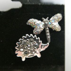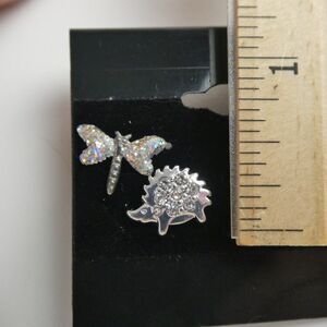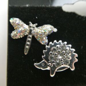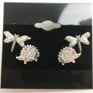 Hedgehog Dragonfly Sparkly Silver Tone Pierced Earrings Stud Lot Animal Cute