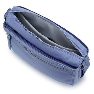 1 interior zippered RFID-blocking pocket, and 2 open pockets.Main compartment has separate padded pocket for mini tablet|1 interior zippered RFID-blocking pocket 2 open pockets|Adjustable shoulder strap|Two front exterior zippered pockets one has open pocket for your cell phone|Back exterior zippered pocket| Dimensions: H: 8.7 inches D: 3.5 inches W:11.4 inches| Strap Drop Length: 26 inches| Weight: 0.60 lbs| Volume: 5.74 l| Outer Body Material: 40% Nylon / 60% Polyester| Lining Material: Nylon