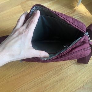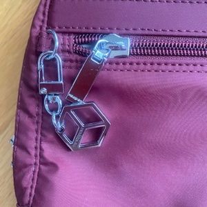 Lightweight, washable, with RFID pouch inside. Multiple compartments - combination of open, zippered and velcro.
