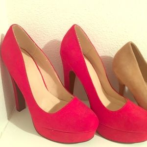 Beautiful Heels from Charlotte Russe , Forever 21, Rue 21, and Giselle . . Size 8.5 - 9 Only worn a couple times . Boot heels never worn.. no tags . All are in great condition . Paid about 150 for them all.. so.. IDE like to sell them together for 90, but will sell separately for different prices.