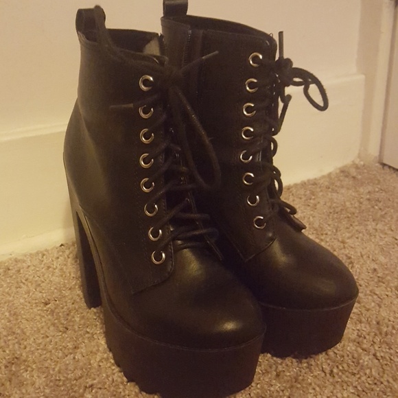 Black lace-up booties with 6 inch heel. A little worn with a few scuff marks but they're not too noticeable when wearing.