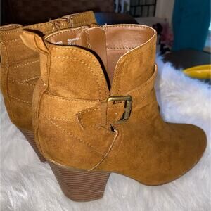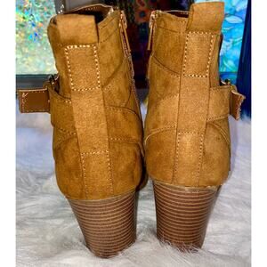 Details: Ankle boots, heel boots, decorative side buckle, suede, side zip, 3 inch heel, memory foam insole, comfortable and easy to walk in