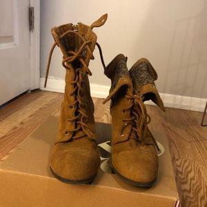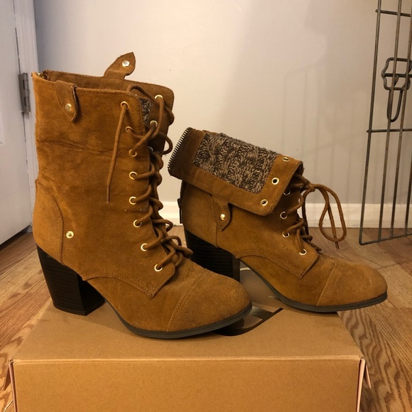 These heeled booties from Charlotte Russe can be styled up or down with the cozy material exposed. Never worn! Size 7.