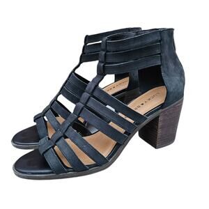 Heeled Gladiator Sandals Lucky Brand Kyndrah Size 8.5 Strappy Cage Black Leather