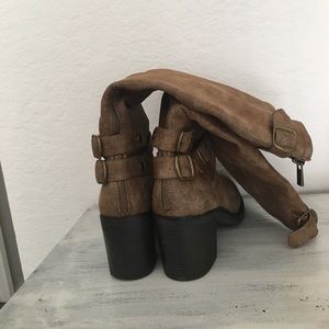 3" healed boots. Cute buckles and zipper on the back. Soft comfortable material on the inside.