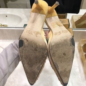 Heeled mule slippers, embroidery & beads, Size 6.5