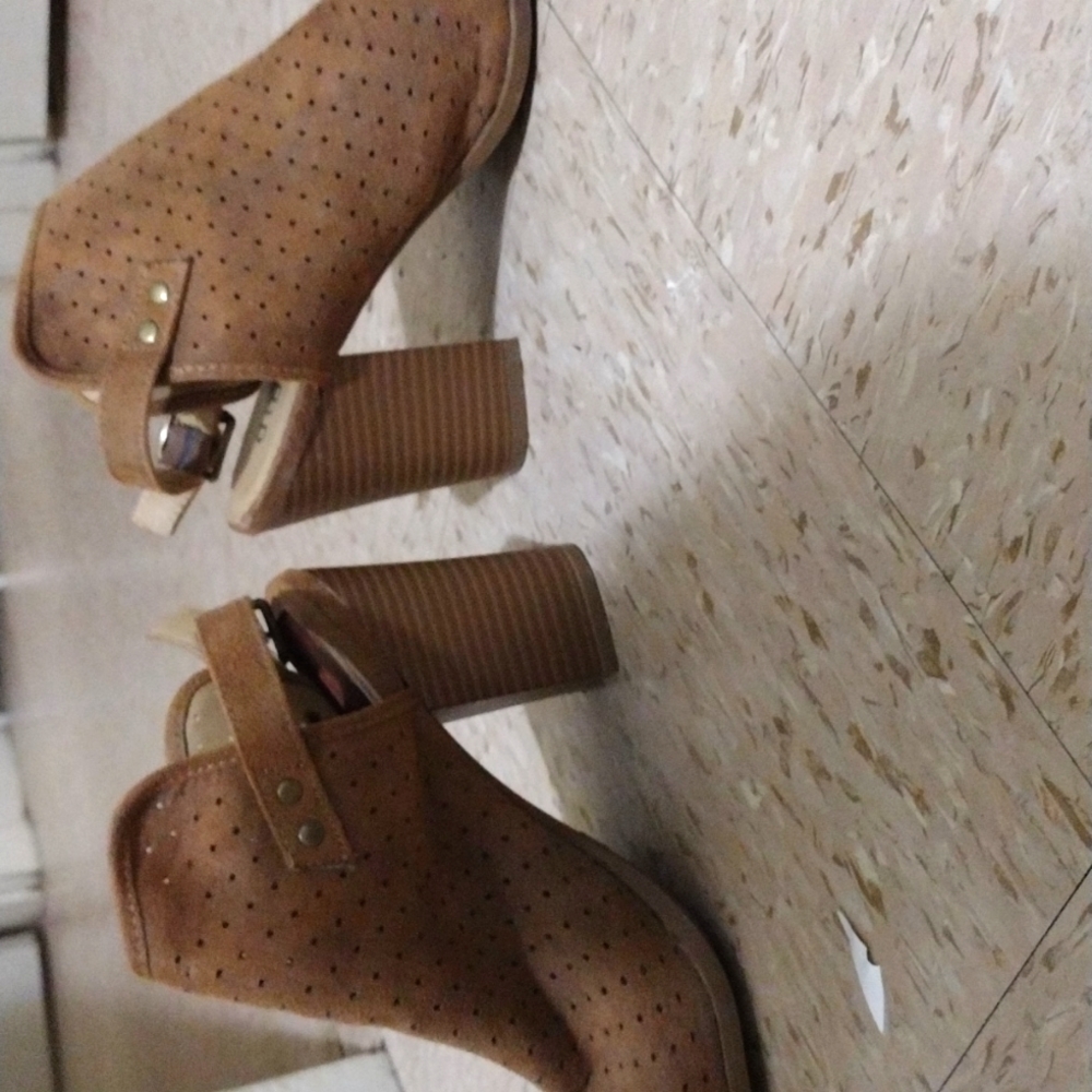 heals my by diba suede Brown good condition one shoe does need lining as it came out only wore a few times